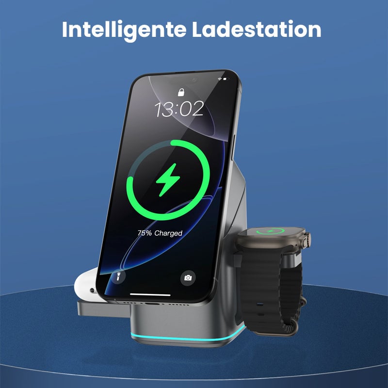 Dieses Ladegerät hat meine Art, meine Geräte zu organisieren, komplett verändert. Die Möglichkeit, drei Geräte gleichzeitig zu laden, ohne überall Kabel zu haben, spart so viel Zeit und hält meinen Schreibtisch ordentlich!