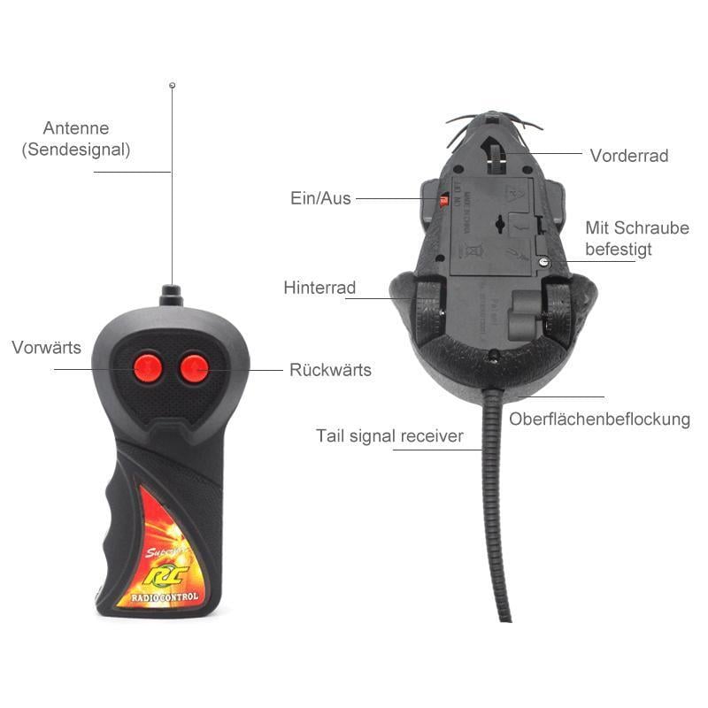 Maus mit 3 x 1,5 V AA-Batterien (Batterien enthaltet), Controller mit 2 x 1,5 V AAA-Batterien (Batterien enthaltet), Das Paket beinhaltet: 1 x Fernbedienung + 1 x RC-Maus