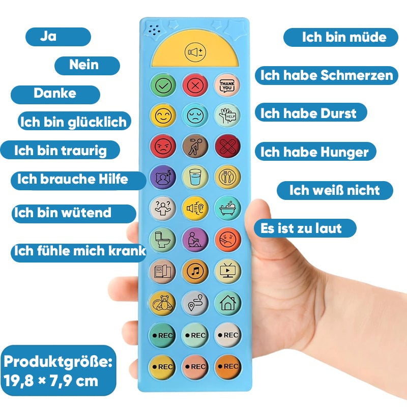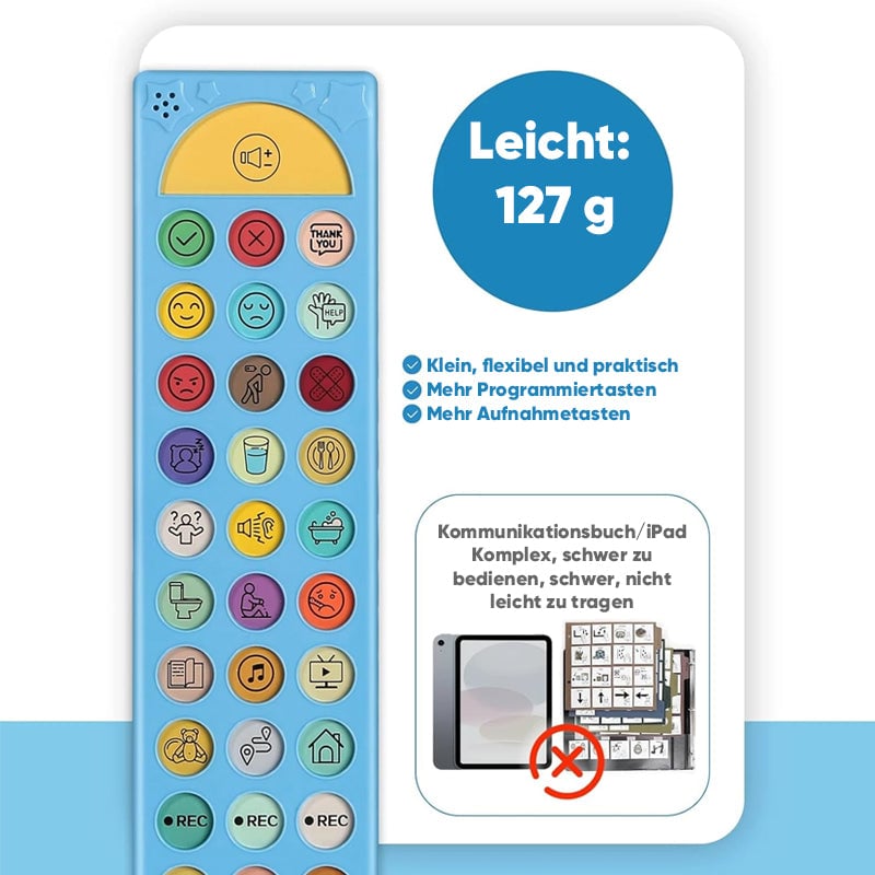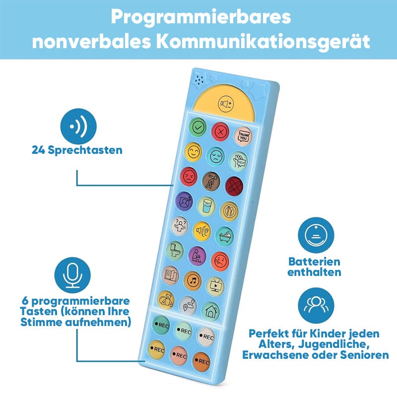 6 programmierbare Tasten: Dieses AAC-Gerät für Personen mit Autismus verfügt über 6 programmierbare Tasten, mit denen Sie eigene Sprachbefehle aufnehmen können. So lässt sich das Gerät individuell an Ihre Bedürfnisse anpassen und ermöglicht eine persönlichere und effektivere Kommunikation.