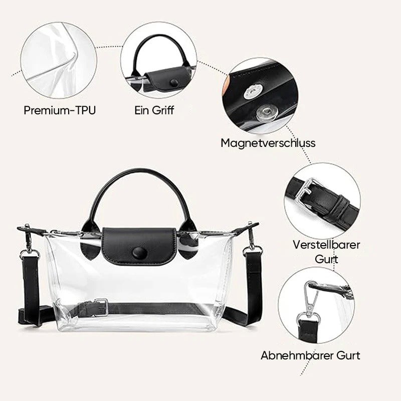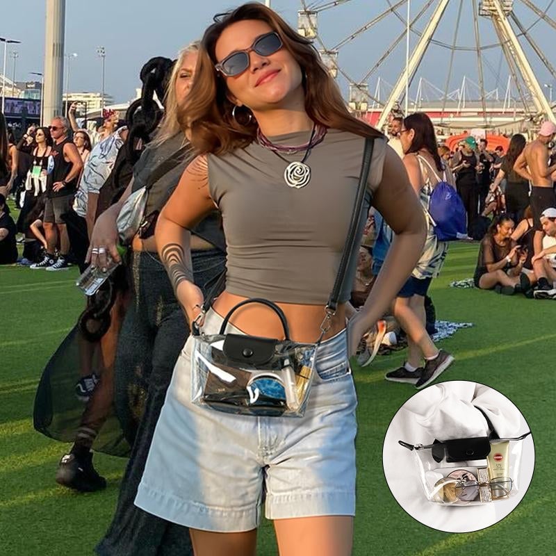 ✨ See it, style it, carry it – vom Konzert bis zum Kaffeetrip, diese transparente Tasche hält dich schick und bereit für alles! 🎶🏟️👜