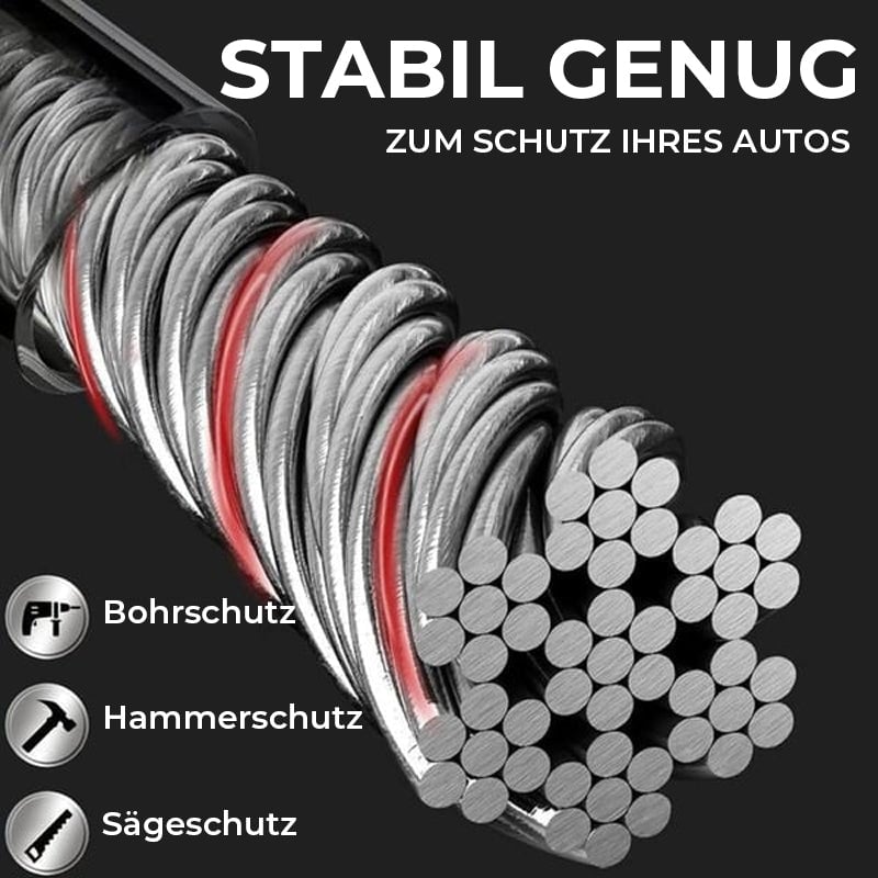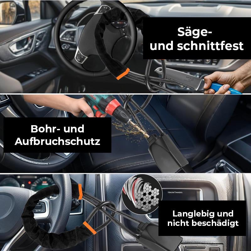 Hergestellt aus hochfestem, geflochtenem Stahlseil – 50 % dicker als herkömmliche Schlösser – und mit PVC beschichtet, um Ihr Lenkrad zu schützen und Rost zu widerstehen.
